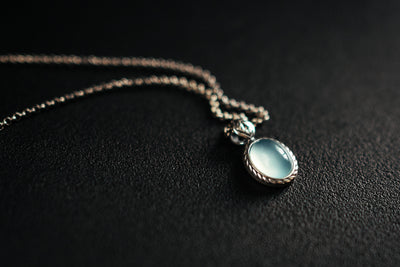 Minimalistischer Wasserachat-Anhänger aus Sterlingsilber. Aquaachat-Edelsteinanhänger. Leuchtender pazifischer blauer Stein.