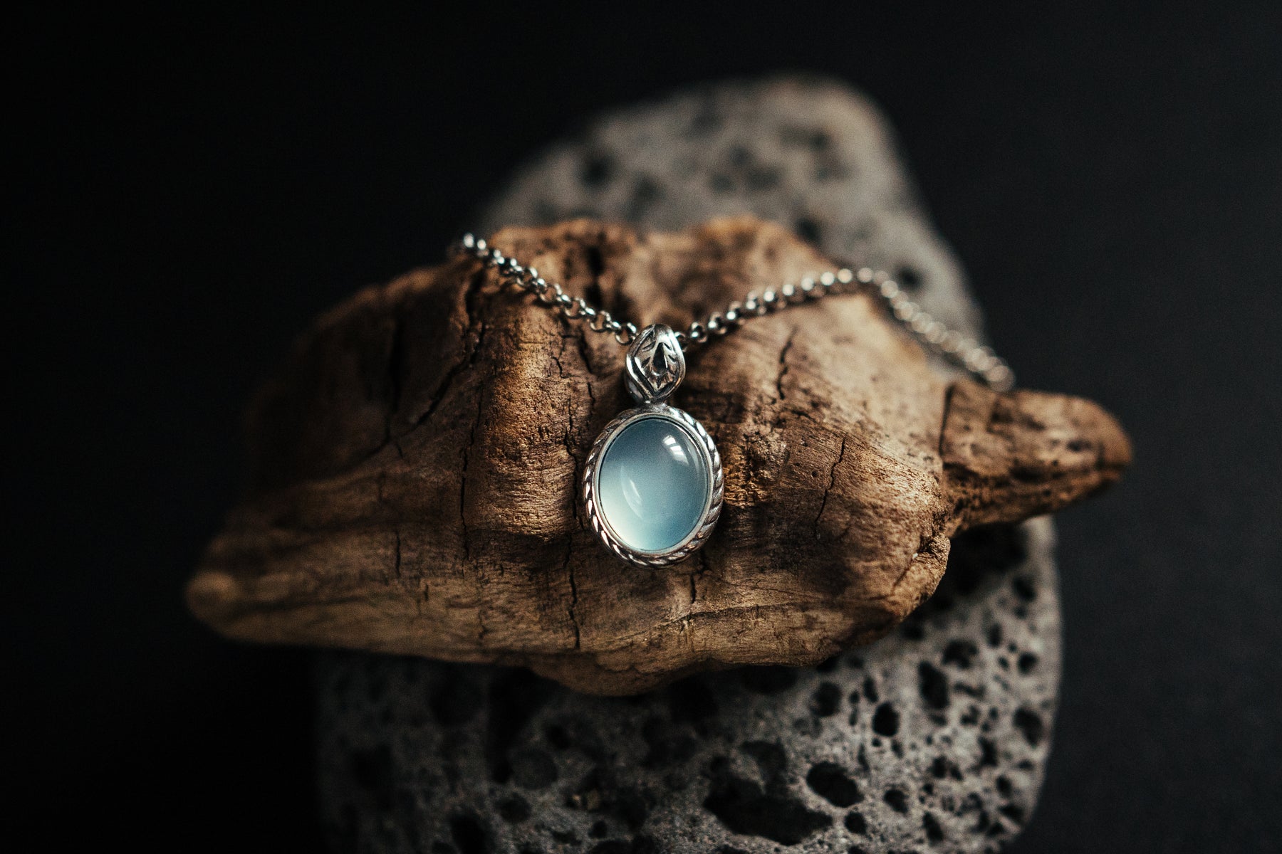 Der Anhänger besteht aus 925er Silber und natürlichem Wasserachat.