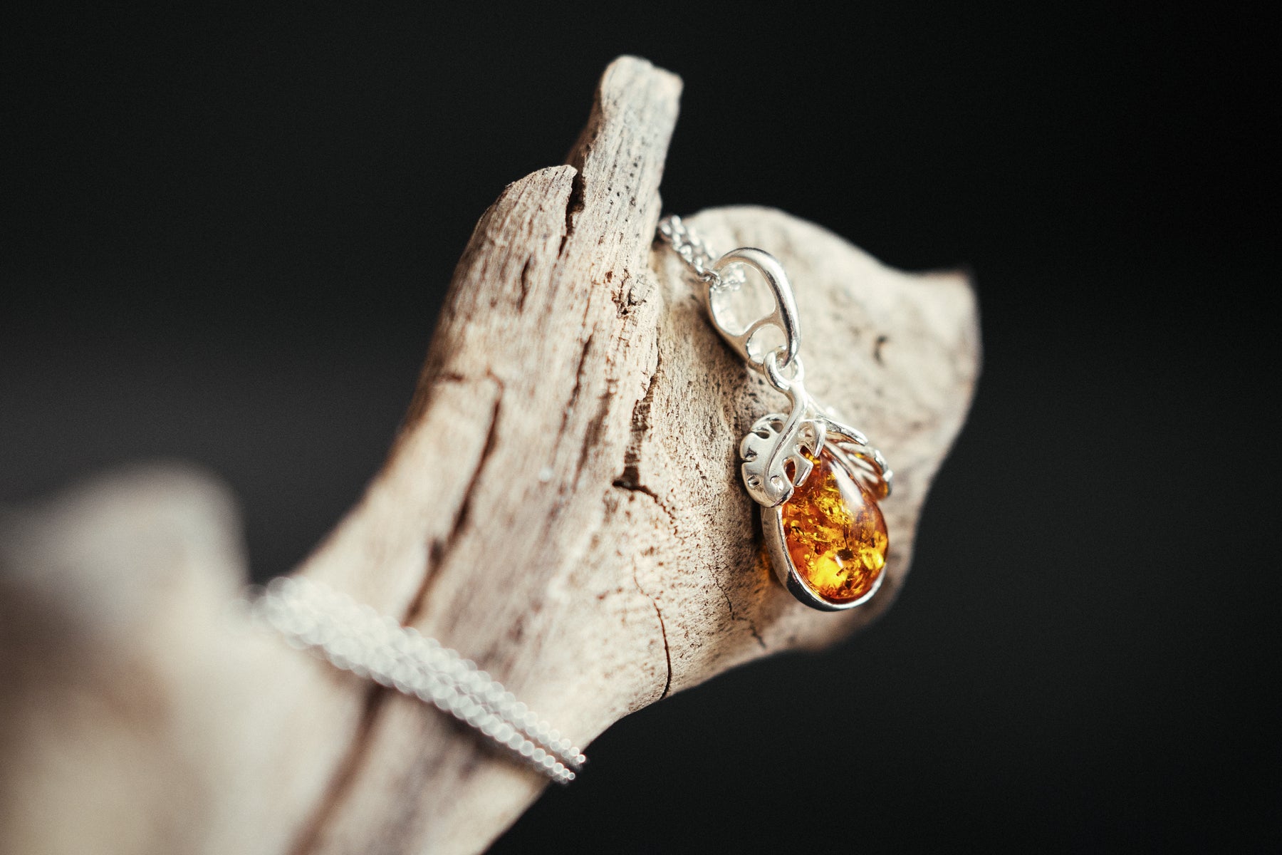 Jedes unserer Schmuckstücke wird in sorgfältiger Handarbeit aus hochwertigem 925er Sterlingsilber und echtem baltischen Bernstein gefertigt, der direkt aus der Ostsee stammt.