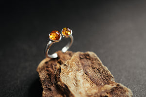 Einzigartiger verstellbarer Silberring mit natürlichem Bernstein.