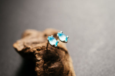 Fügen Sie Ihrem Alltagsstil mit diesen zarten Ohrsteckern einen Hauch von sanfter blauer Eleganz hinzu. Sie verfügen über natürliche Aqua-Agate-Gemmen, die in einer raffinierten Marquise-Form geschnitten und in 925er Sterlingsilber gefasst sind. Sie vereinen Minimalismus, subtile Farben und zeitlosen Charme. Leicht und hypoallergen, perfekt für den täglichen Gebrauch oder als durchdachtes Geschenk.